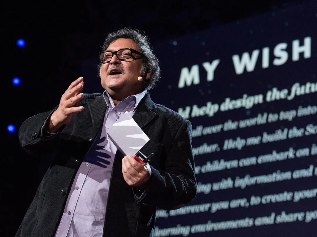 他是 Sugata Mitra,一位计算机科学家和教育理论家。他在印度最穷的地方做了一个实验,在墙上挖个洞,里头装台电脑,旁边再接个鼠标。墙就是最常见的土墙,电脑是老掉牙人家都不要的电脑。然后,那些光着脚丫的穷孩子就围着这电脑玩,过了半年,发现他们说最纯净英音的口语,他们自动就在那里学。