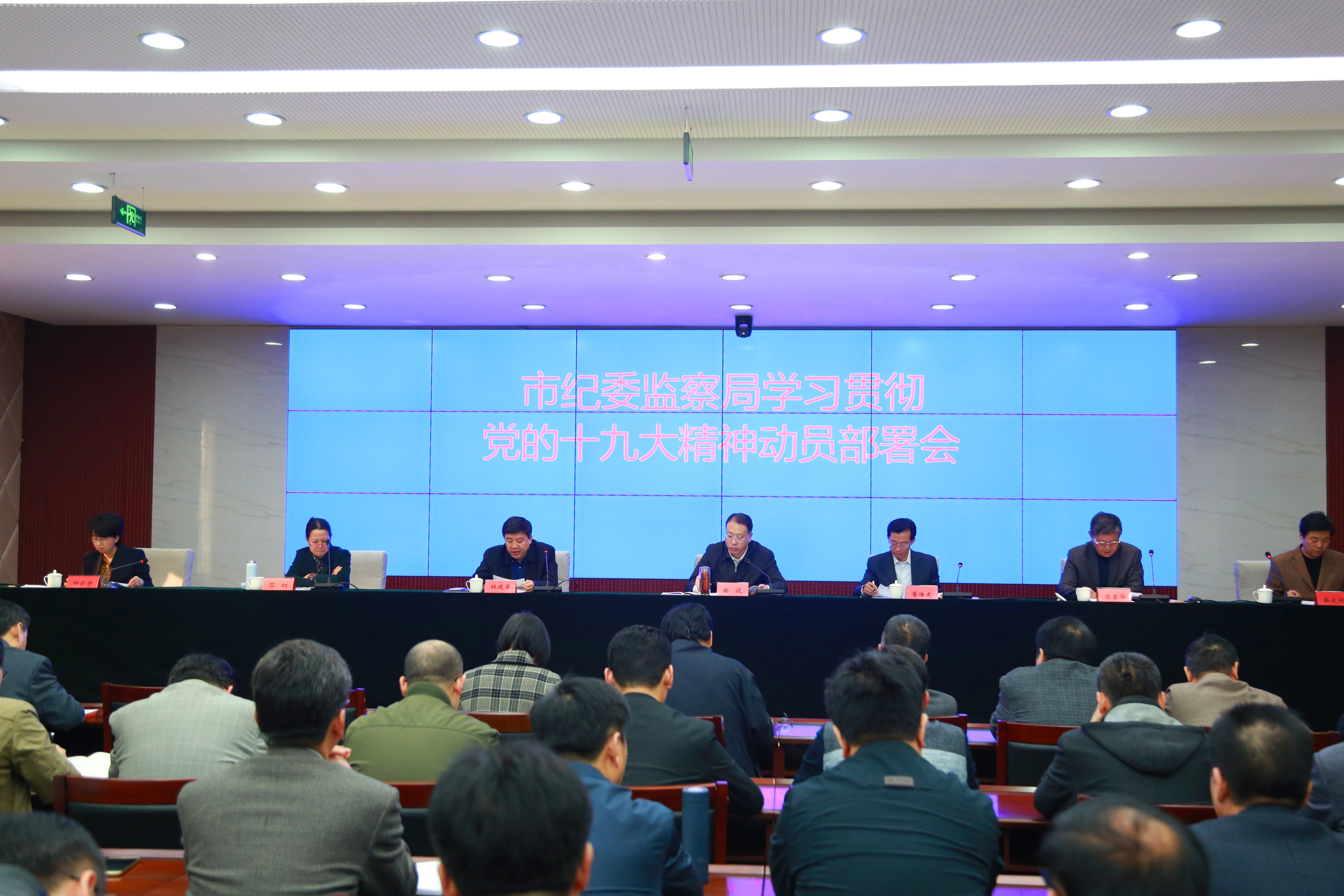 10月27日上午,市纪委召开学习贯彻党的十九大精神动员部署会议,市纪委监察局领导班子成员,委局机关和派驻机构全体干部,市委巡察机构负责人,各巡察组组长、副组长参加了会议。