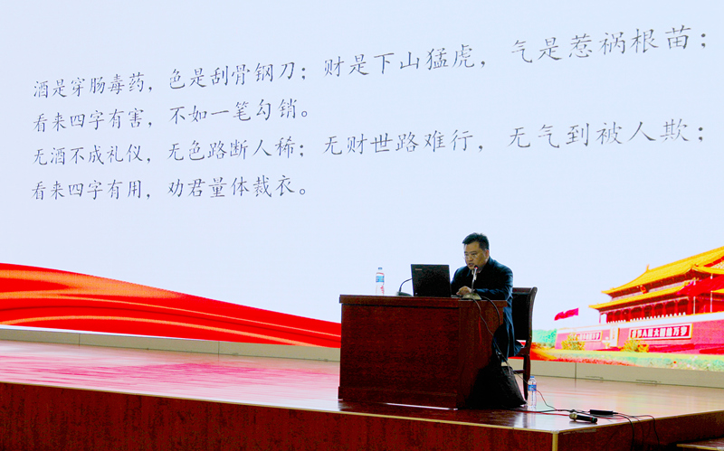 讲座共分三个部分,第一部分,守住底线,把握好权力观、金钱观、美色观;第二部分,明辨利行,把握好公私、义利、是非、情法、亲清、俭奢、苦乐、得失的关系;第三部分,感悟人生真谛,做一个幸福快乐高尚的人。华春主任告诉老师们,要行使好手中的权利,依法秉公廉洁用权,要正确看待金钱与美色,做到心有所畏、言有所戒、行有所止;对于党员干部而言,要加强党性修养、践行为民宗旨、强化政治定力、坚持法治原则等,处理好各种关系;要始终严格要求自己,加强道德修养,追求健康情趣,清清白白做事,坦坦荡荡为师。