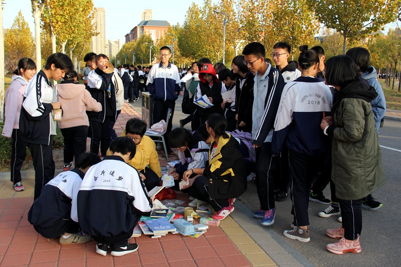 初冬的天气虽略有寒风,但同学们却充满了热情。我校党委书记、校长于秀娥饶有兴趣地来到跳蚤市场,但她还没来得及走完全程,便被同学们“包围”了。大家纷纷拿出心爱的笔记本、课本请于校长签名留念,成为冬日校园里的一道美丽的风景线!她勉励大家要明确目标,坚定信念,顽强拼搏,成就梦想!现场感动满满,温情弥漫。本次活动中还特别加入了“社团才艺展示”这一环节,并通过义演的方式展现给全校师生。同学们精彩的节目表演,赢得了现场阵阵掌声和欢呼声。