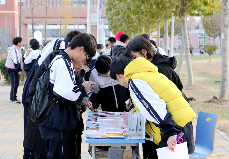 在我校团委和晓岚文学社成员的引导下,各个摊位有序到达指定位置进行爱心义卖。在热闹非凡的集市中,同学们全员出动,开启商业头脑,变身义卖小摊主。活动现场人来人往,各类文具、手办、教辅图书、鲜花绿植、明信片琳琅满目。一件件充满爱心的商品,一张张洋溢着微笑的笑脸。