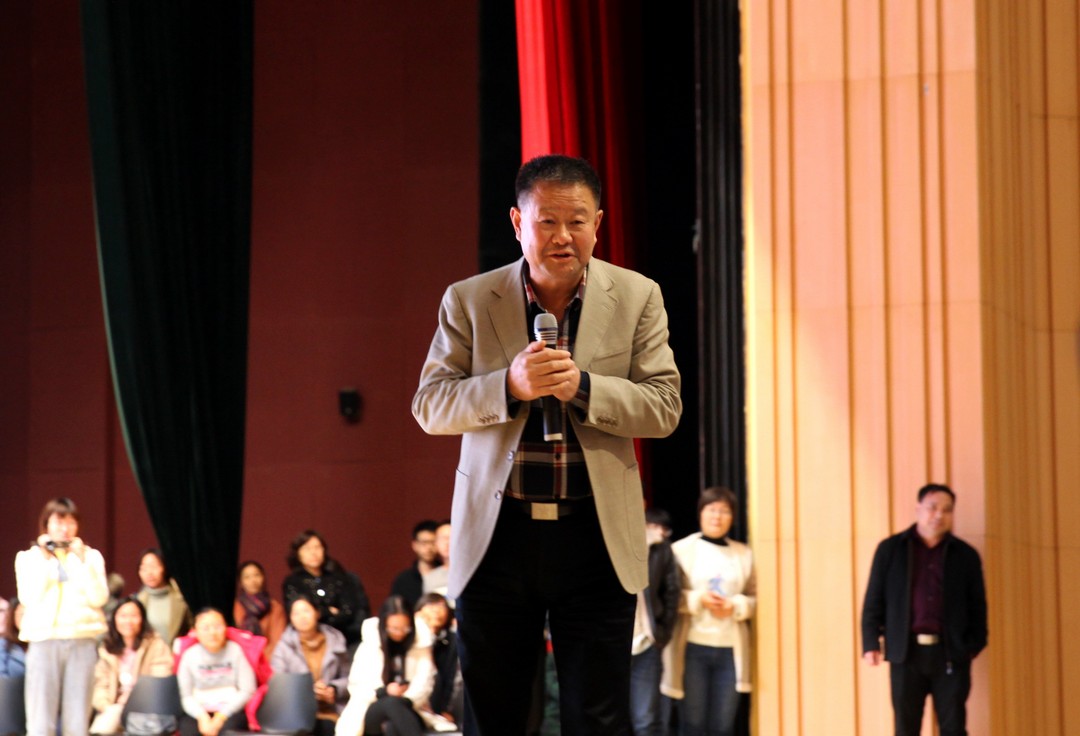 讲到动情处,王教授和同学们高声齐诵“天将降大任于斯人也,必先苦其心志,劳其筋骨,饿其体肤……”的先哲名言,寄语大家“自古英雄多磨难,人间正道是沧桑”。王教授先进科学的经验、鲜活生动的实例、通俗幽默的语言、恳切真挚的教诲赢得了阵阵掌声与欢呼喝彩。