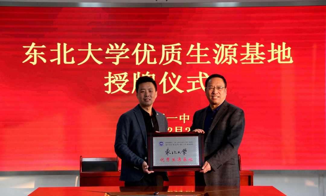 12月20日下午,东北大学优秀生源基地授牌仪式在我校知行楼六楼会议室隆重举行。我校副校长顾新立、国际部负责人张红出席了授牌仪式。