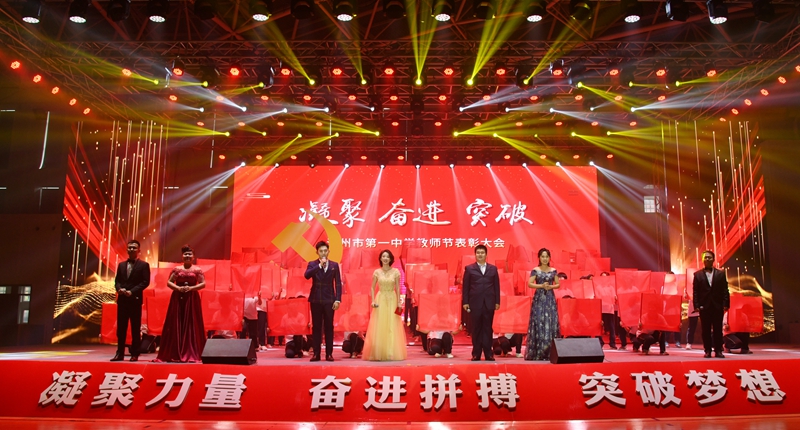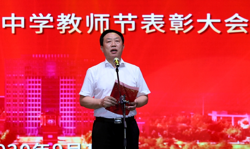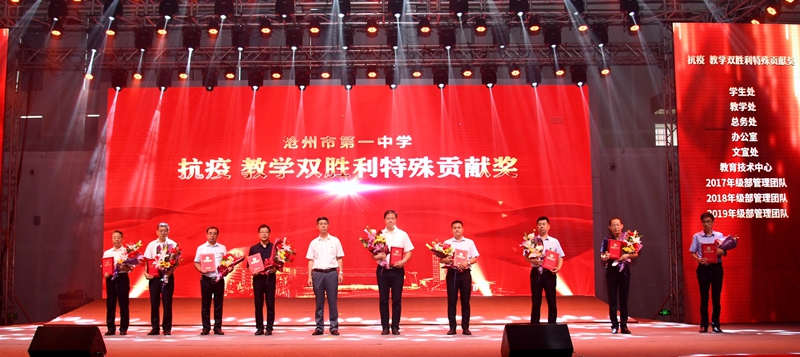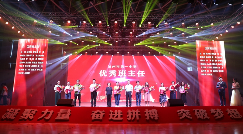 为了凝聚全体师生奋进力量,激发干部职工干事创业的热情,早日实现我校“一年上台阶,两年求突破,三年大变样”的发展目标,我校于9月10日下午在学校体育馆举办了以“凝聚、奋进、突破”为主题的2020年教师节表彰大会。沧州市市委副书记宋仁堂,市教育工委书记、教育局长李树杰,东塑集团总经理丁圣仓,东塑集团党委书记肖燕,中燃沧州经管集团总经理许伟红出席了大会。我校领导班子、全体教职员工及部分学生、家长代表参加了活动。