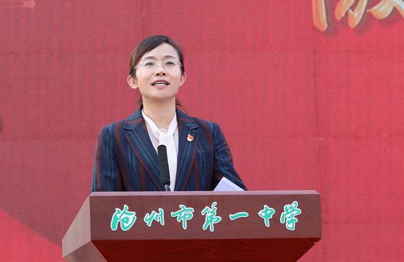 高三28班施俊清同学的家长代表全体高三学生家长发言。她殷切地叮咛全体高三学生,认识自己、战胜自己、超越自己,活出一中人的样子,考出一中人的风采!